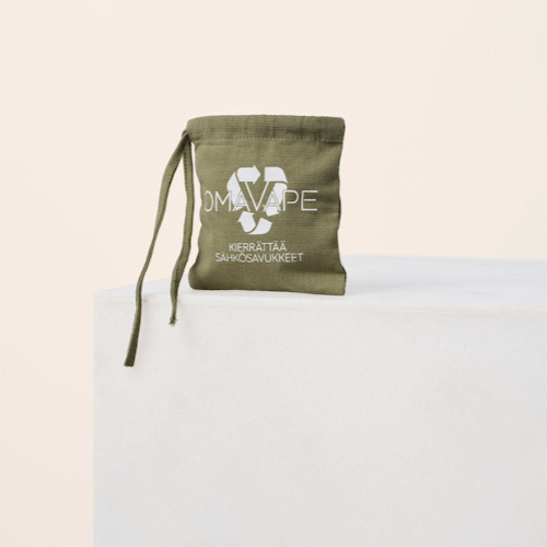 Ilmaiset, uudelleenkäytettävät pussit, jotka on valmistettu kierrätetystä puuvillasta, jaetaan, jotta sähkötupakkajätteesi kerääminen olisi mahdollisimman helppoa.